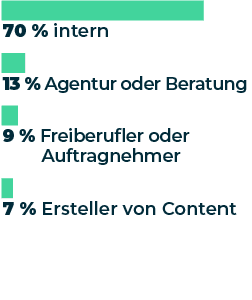 Ein Diagramm, das die „Art der Beschäftigung der Befragungsteilnehmer“ zeigt. Die Ergebnisse: 70 % intern, 13 % Agentur oder Beratung, 9 % Freiberufler oder Vertragspartner und 7 % Content-Ersteller.Social-Media-Erfahrung der Umfrageteilnehmer