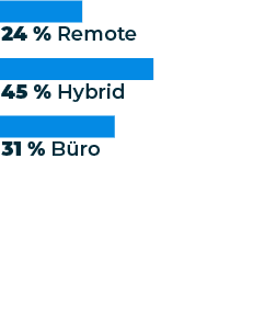 Ein Diagramm, das den „Arbeitsort der Befragungsteilnehmer im Angestelltenverhältnis“ zeigt. Die Ergebnisse: 24 % Remote, 45 % Hybrid und 31 % Büro.