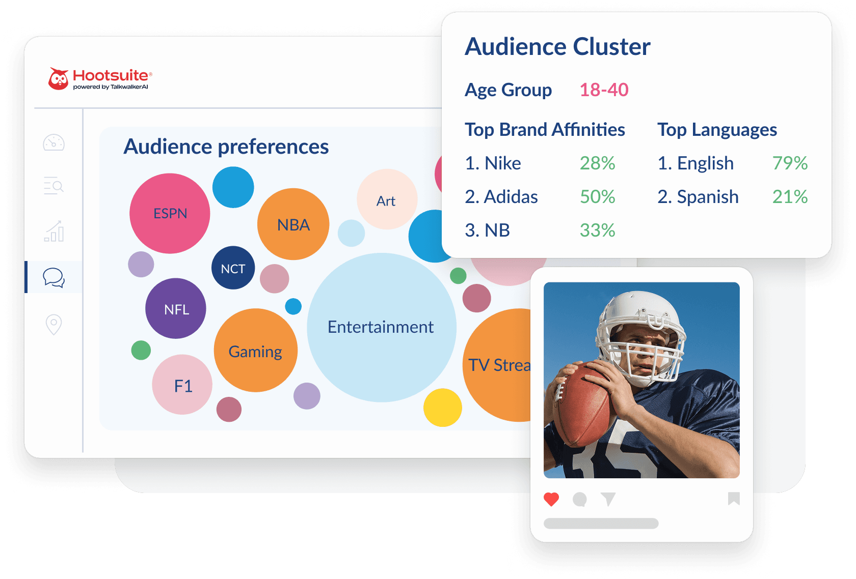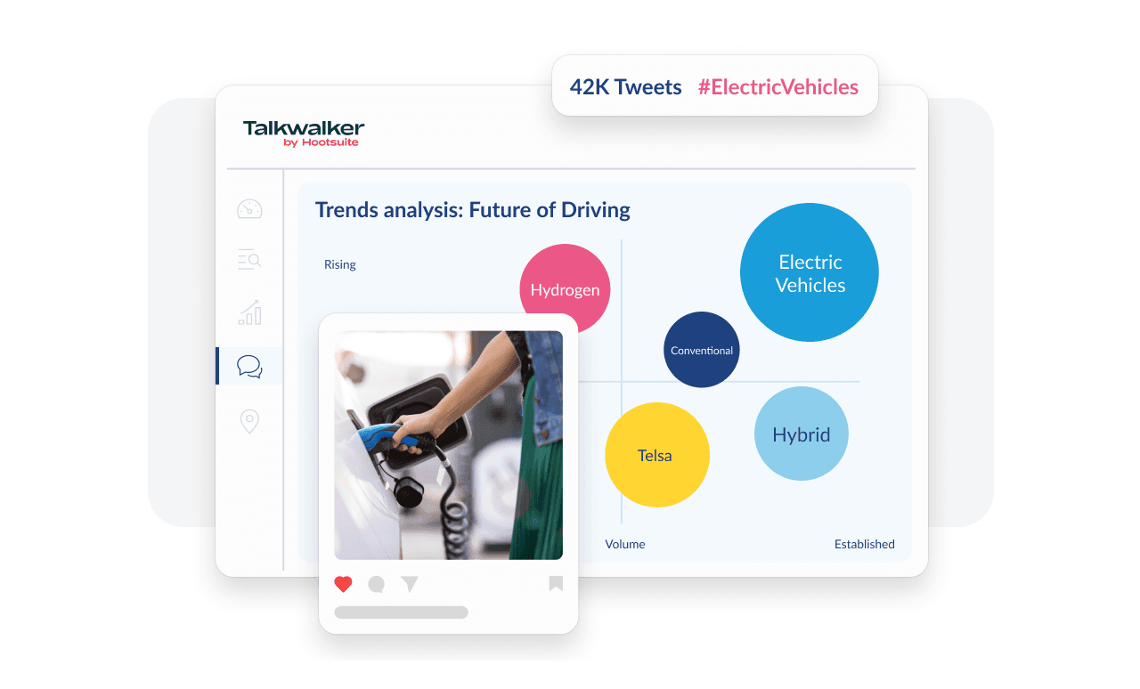 Descubre las tendencias emergentes, pronostica el futuro y activa la información de tu estrategia de la mano de Hootsuite, con la tecnologia de IA de Talkwalker.