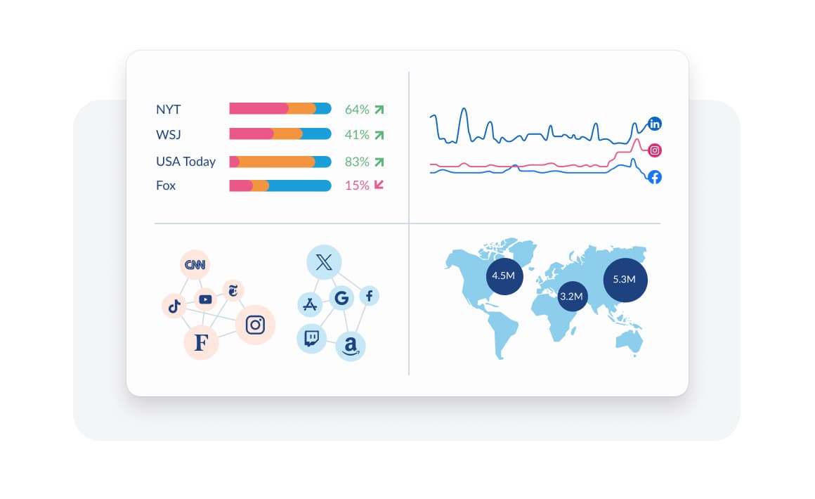 Descubre cómo se posiciona tu marca a medida que surgen tendencias en tu sector. Rastrea la cuota de voz, el sentimiento y las colaboraciones de tus competidores para entender quién lidera la conversación y dónde se generan oportunidades o riesgos.