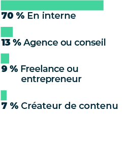 Graphique montrant le « type d'emploi des personnes interrogées », avec les résultats suivants : 70 % d'employés internes, 13 % d'agences ou de consultants, 9 % d'indépendants ou de sous-traitants et 7 % de créateurs de contenu.L’expérience des médias sociaux des personnes interrogées