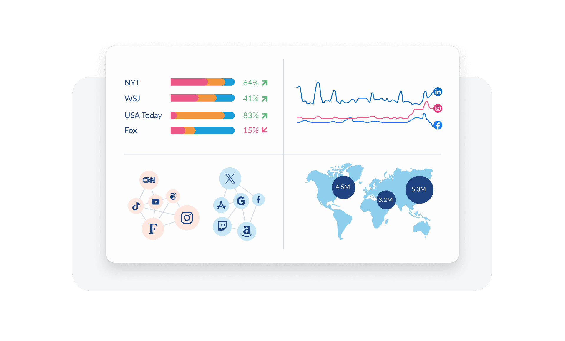 Trustpilot: Monitor reviews and ratings for your products or services, including sentiment and volume trends.