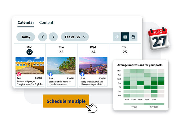 With corporate channels and four international brands — Barceló Hotels & Resorts, Occidental Hotels & Resorts, Royal Hideaway Hotels & Resorts, and Allegro Hotels — Barceló Hotel Group needed to scale its presence across Instagram, Facebook, X, LinkedIn, TikTok, and YouTube while maintaining local authenticity and control.